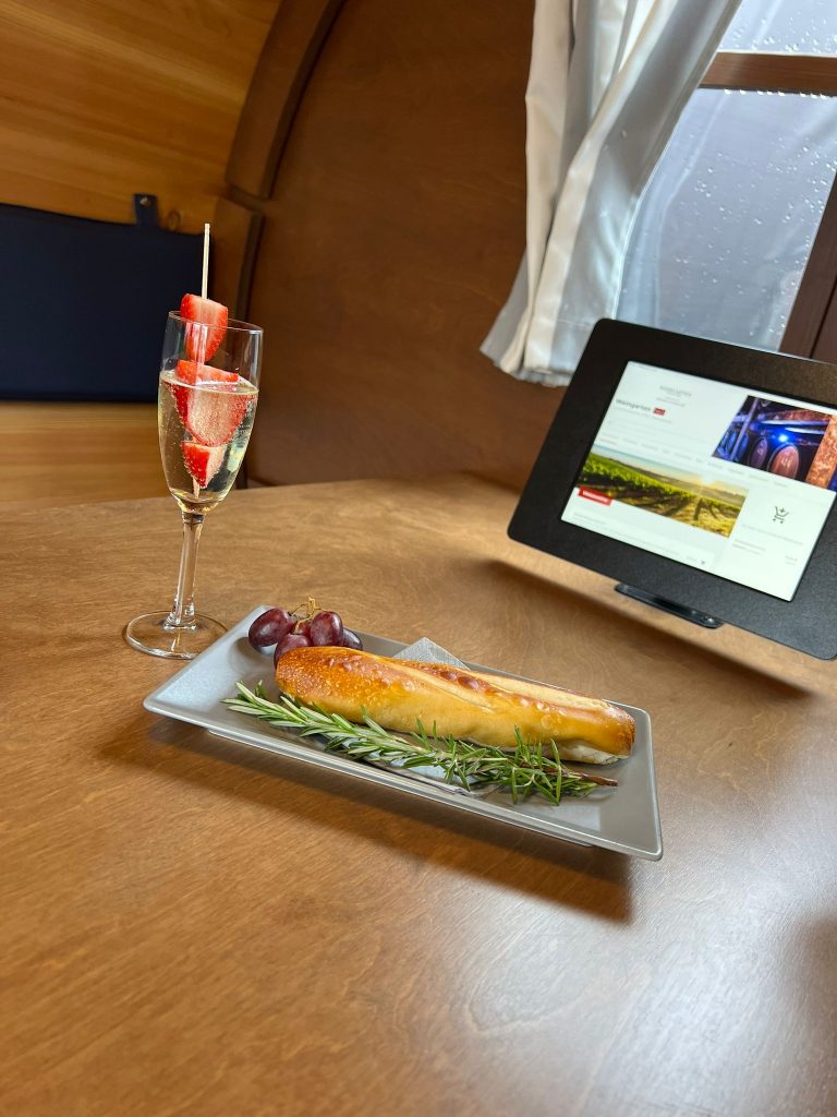 Speisen und weinbegleitende Snacks ordern sie hier bequem über Tablets direkt am Tisch.